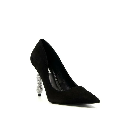 Our Bonus courts were made to make a sophisticated style statement. Meticulously crafted in-house with sumptuous premium suede, they have been cut for an elegant pointy toe, but what makes them truly special is the intricately designed high-stiletto heel, carved in captivating swirling motions throughout and embellished with small crystal adornments – a lavish micro trend set to elevate your look even further. The perfect way to update your evening heel collection.