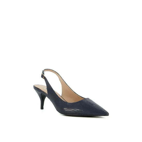 This shoe by Dune London will add a striking finish to your looks. Resting on a kitten heel, the shoe is secured with a buckle fastening. It is complete with a pointed toe for a classically feminine finish.