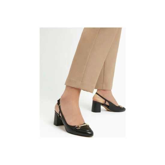 Effortlessly elegant, our timeless Cassie sling backs are the perfect way to ease back into dressing up once again. Crafted from premium leather, this square toed silhouette is the epitome of sophistication. Set on a timeless mid-height block heel for ease of wear and featuring an adjustable ankle strap with gold buckle, this snaffle trim style is ideal for chic day time dressing and beyond.