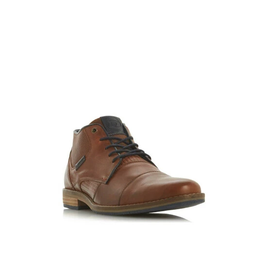 The Chigwell chukka boot from Dune London is perfect for off-duty styling. Designed with lace up fastenings, contrasting sole and a round toe. It is complete with textured paneling and top stitch detailing.