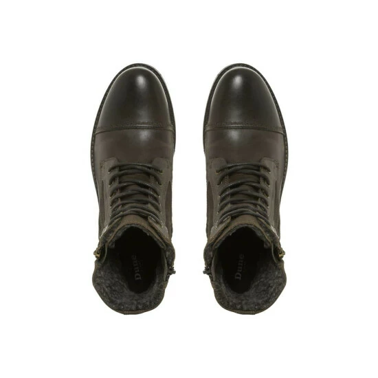 Create statement looks with this biker boot from Dune London. Showcasing a buckle detail, double side zips and lace-through fastenings. It’s also lined with fluffy faux-fur to keep you warm on cooler days.