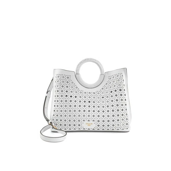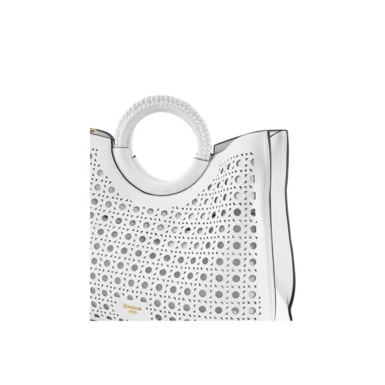 Everyday accessorising is made easy with the Dellila tote bag. This laser-cut style is large enough for all of your essentials, and can be held by the ring handles or the long shoulder strap.