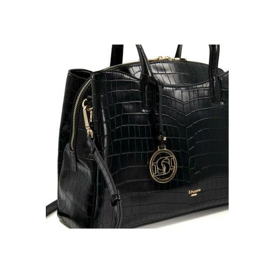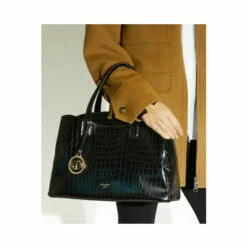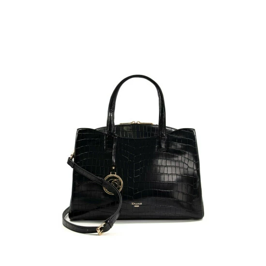 Update your work bag collection with our Dignified grab-handle tote. Beautifully debossed with a chic croc-effect throughout, the detachable shoulder strap allows you to wear it hands-free. Fastened with a top zip, our bespoke logo embellishment adds our own special Dune London touch to this staple piece. Inside, you’ll find that there’s enough room to fit a laptop as large as 15 inches inside, too – perfect for your next boardroom meeting.