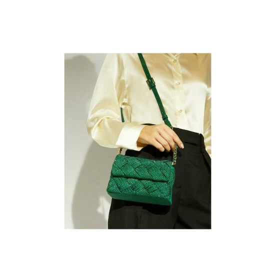 Our portfolio of beloved woven bags has been updated with our covetable Dinidempsy crossbody. Meticulously crafted in-house, this small statement style evokes the same level of opulence as our similar designs, but this time has been reworked with sparkling diamante to instantly elevate the look. Complete with an adjustable shoulder strap and secure magnetic-front closure, there’s also enough room to slot in all your daily and evening essentials.