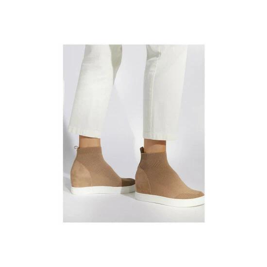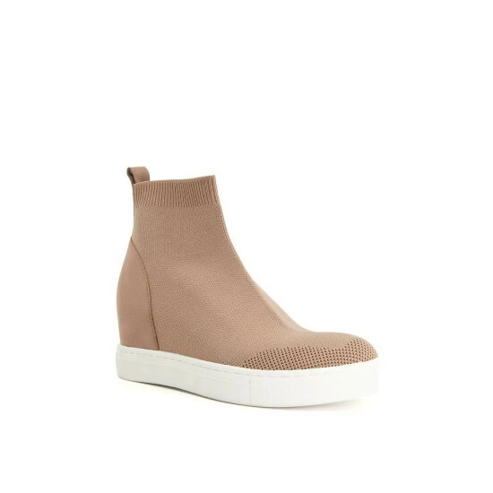 Any woman’s casual-shoe collection will reach new heights in our contemporary wedge sole trainer. This modern silhouette has been designed in a lightweight, breathable fabric. Featuring a rear pull tab this sock trainer hybrid will update your look.