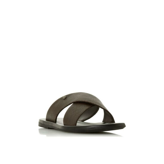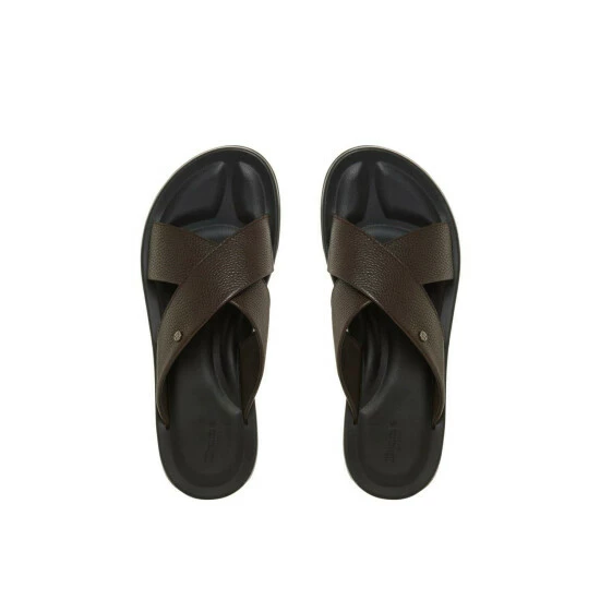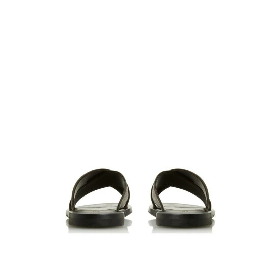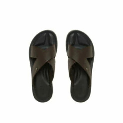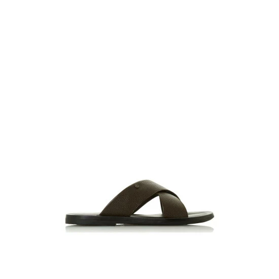 For charming summer footwear, look no further than this sandal. Fitted with a soft, flat sole for all day comfort and support. It features two crossed straps with a brand-embossed metal charm.
