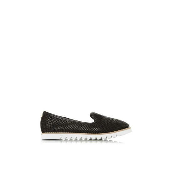 The Galleon loafer from Dune London is a versatile styling option. Showcasing a textured upper and contrasting sole. It features a slipper-cut design and a classic round toe.