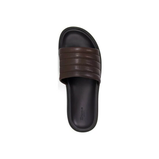 Sun-soaked destinations call for a pair of pool ready sliders. Comfortable and durable this must-have style has been designed in matte leather with padded straps and moulded footbeds.