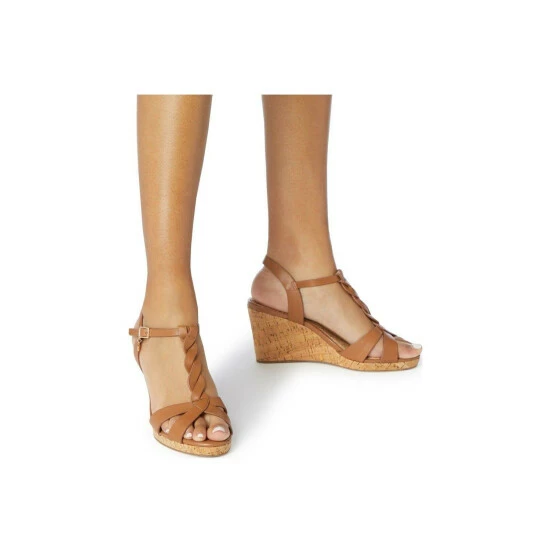 Perfect your summer day-to-night edits with the stylish Koala heel. Featuring a plaited T-bar strap with an open back and a buckle fastening. A sandal toe and a cork effect mid-wedge heel complete the design.