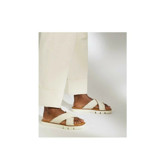 Timelessness meets directional appeal with these effortlessly stylish Lexey Sliders. The crossover straps are scalloped and intricately woven with luxurious leather, while the biker-inspired sole instantly adds a modern twist.