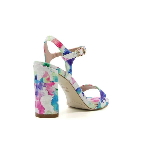 The perfect pair for summer events, our Milano heels are splashed with green, pink, blue and purple. The block heel is high yet comfortable to wear, and the ankle strap can be adjusted to a secure fit.