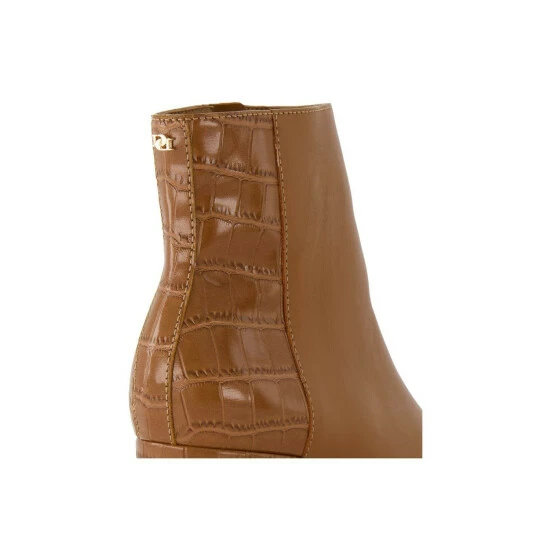 A chic and classic pair of ankle boots that will be your everyday go-to style. The mid height block heel making them perfect or all-day wear. Featuring moc croc detailing and a gold intertwined initial logo on the back.