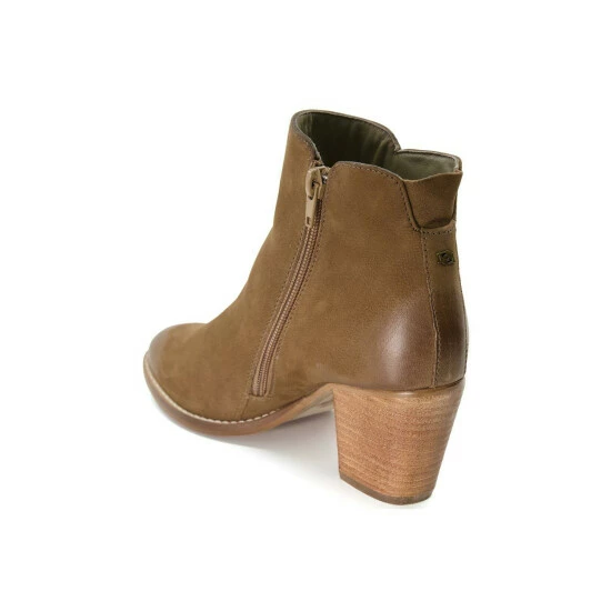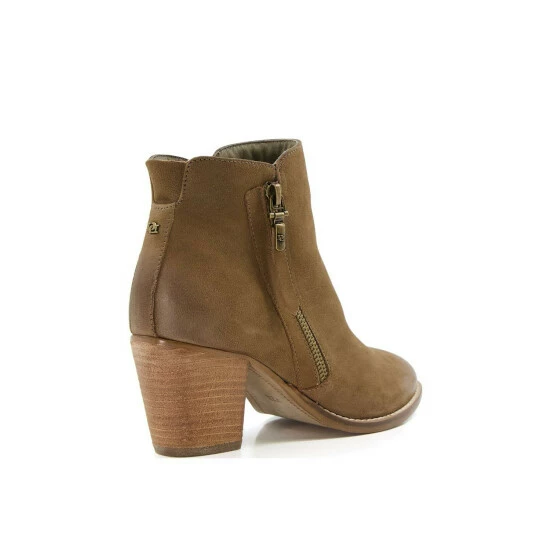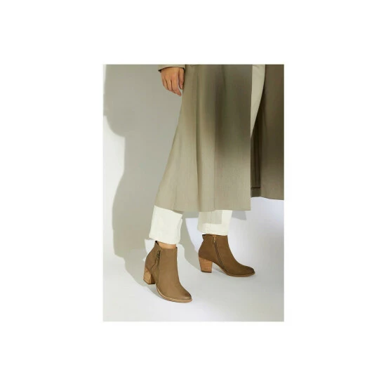 Add a cool edge to your day time looks with these sleek ankle boots. Designed with double zips and shaped with a burnished almond toe work these in from now until winter with bare legs’then tights. With a contrasting sole edged with exposed stitching they rest on a stacked mid-block wooden heel.