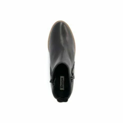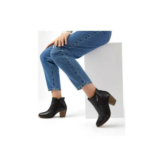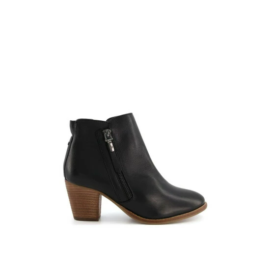 Add a cool edge to your day time looks with these sleek ankle boots. Designed with double zips and shaped with a burnished almond toe work these in from now until winter with bare legs’then tights. With a contrasting sole edged with exposed stitching they rest on a stacked mid-block wooden heel.