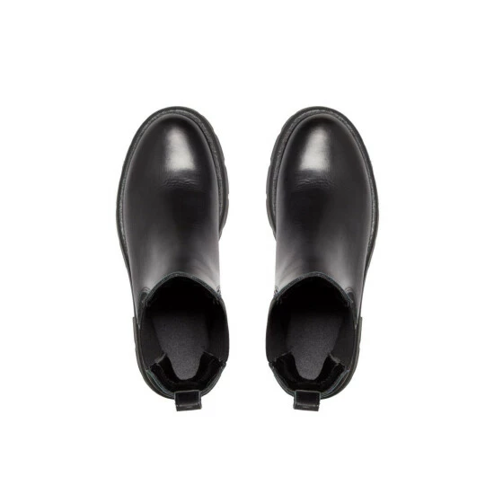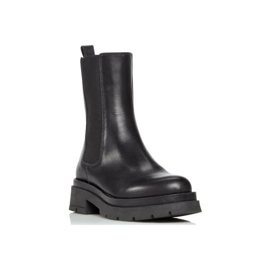 The Chelsea meets the biker with the Palms ankle boots from Dune London. Resting on a chunky cleated platform sole and shaped with a rounded toe. This statement pair is fitted with elasticated inserts and pull-up tabs.