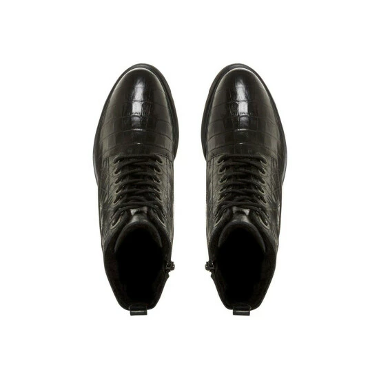 Smarten up daytime looks with the Parkland hiker boot from Dune London. Shaped with a round toe, secured with a lace up fastening and side zip. It’s complete with a cosy shearling lining for extra warmth.