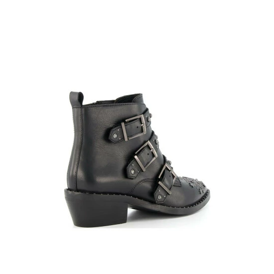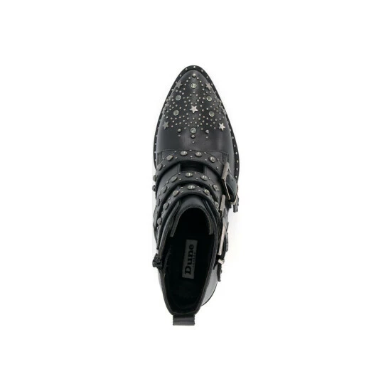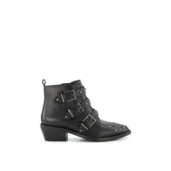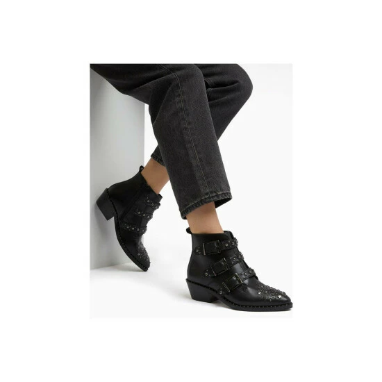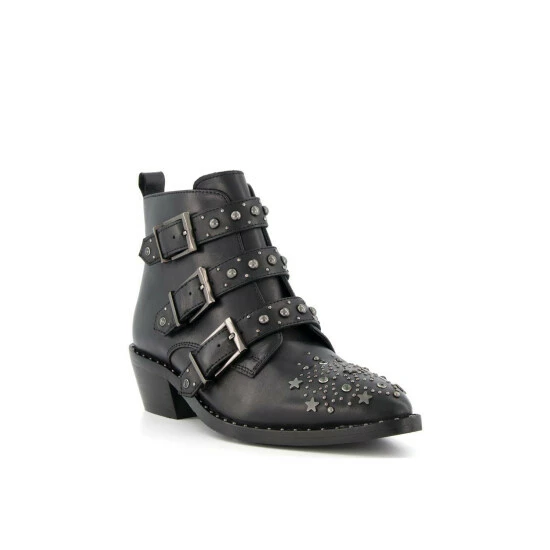 Add a tough-luxe edge to your wardrobe with our Pasha biker boots. Embellished with stars, jewels and studs they also feature three decorative straps and a studded inlay. Designed with a pointed toe they rest on a low and fasten with an inside zip.