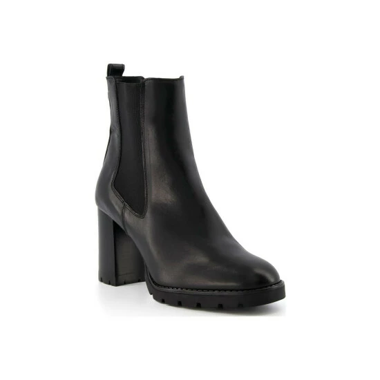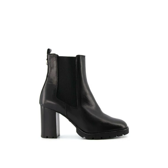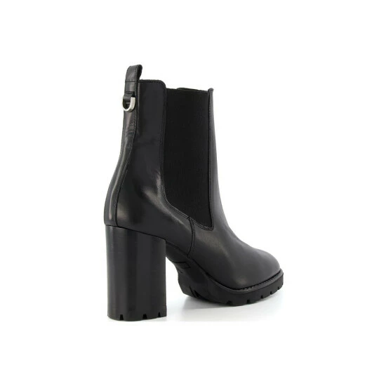 Opt for modern feminine style these leather Chelsea boots. Featuring a rear pull tab with silver D-ring detailing they rest on a high block heel with a comfortable cleated sole., Fitted with elasticated side panels to easily slip on and off.