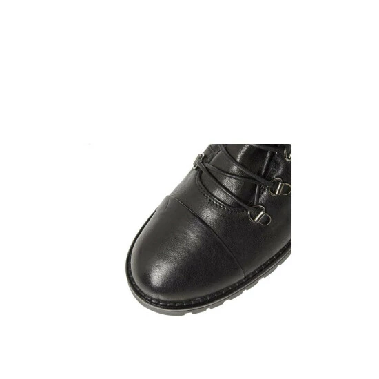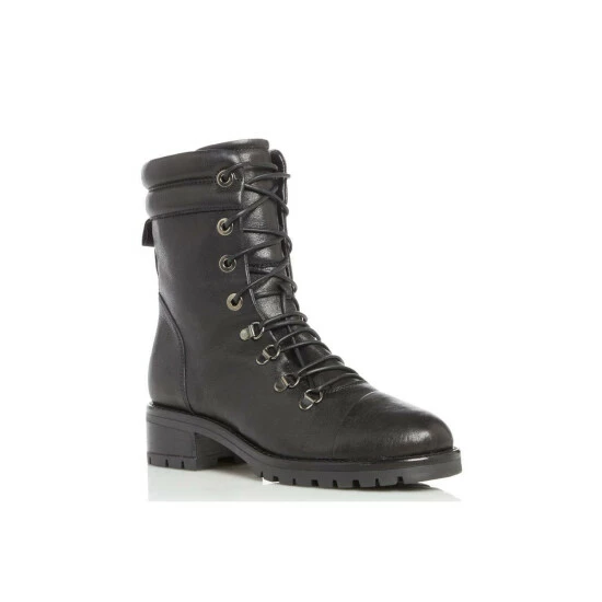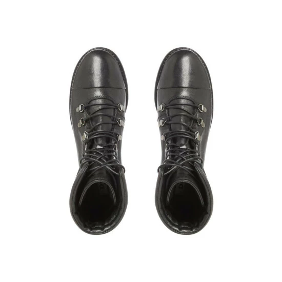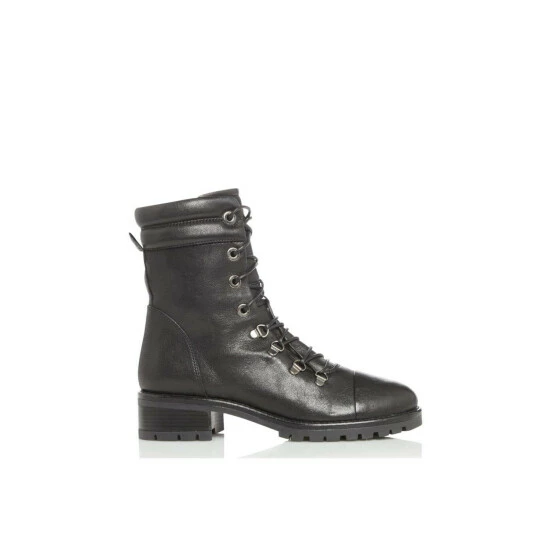 Amplify your rebellious style with the Dune London Paz boots. A classic low block heel and a cleated sole. Completed with a lace up closure and round toe front.