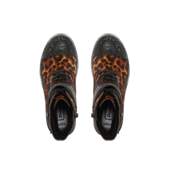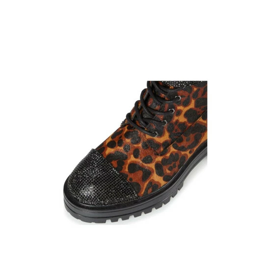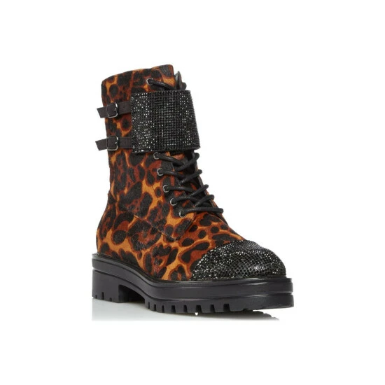 Turn heads this season with the striking ankle boots from Dune London. Featuring a crystal embellished toe cap and thick ankle strap. The look is finished with a chunky sole and side buckle.