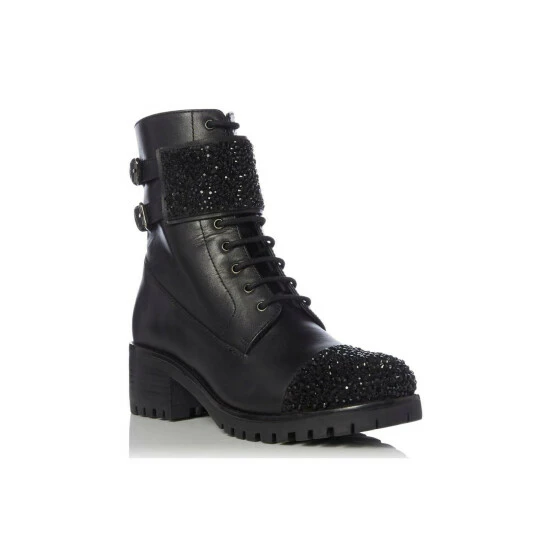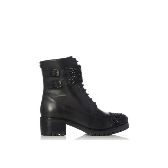 Update your weekend looks with the Pegasis boots from Dune London. Featuring hotfix embellished toe cap and ankle strap. It is secured with a lace fastening and is completed with a cleated sole.