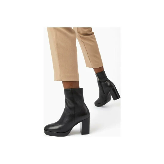 Add height to your everyday edit with the Dune London Pella ankle boots. Resting on a comfortable block heel and fitted with a side zip. Wear these to work with skirts and dresses or with jeans for casual events.