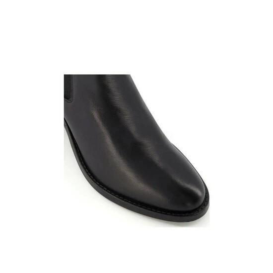 A classic pair of every day leather Chelsea boots that bridge the seasonal dressing gap. The low block heel makes them perfect for those don’t-have-a-minute-to-even-stop-for-lunch days. Featuring our Dune initial logo on the pull tab. Team with a bare leg and your favourite dresses when the sun shines’then add tights when the clouds draw in.