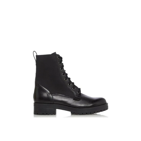 Create statement off-duty looks with the Perrie boots from Dune London. Showcasing a smooth upper with textured panels and neat lace fastenings. They are set on a chunky cleated sole and finished with a mid block heel.