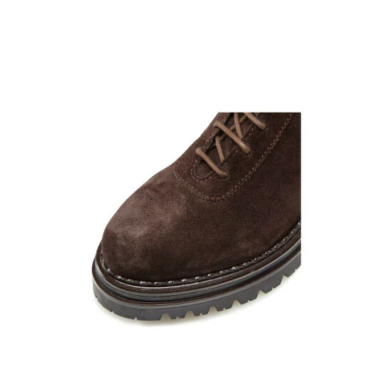 The essential ankle boots from Dune London. Featuring chunky soles with a lace up finish and zip fastening. Completed with a leather tagged zip and a scalloped edging to the sole.