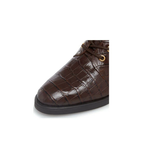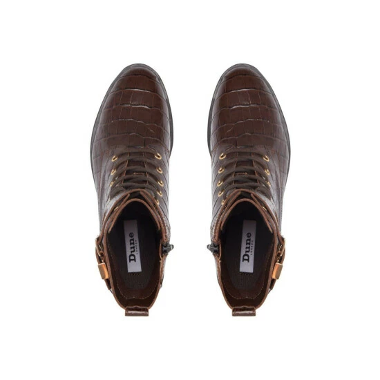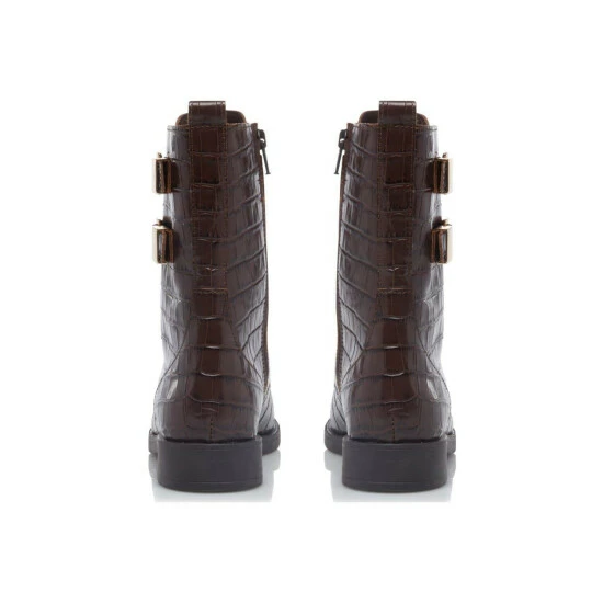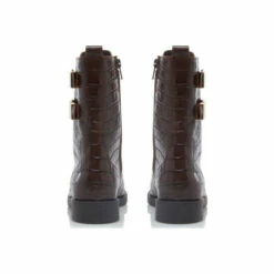 Step into the season with a new pair of statement boots. These boots rest on a low heel and have a side zip fastening. Features an eyelet lace up finish encased with a thick buckle strap.