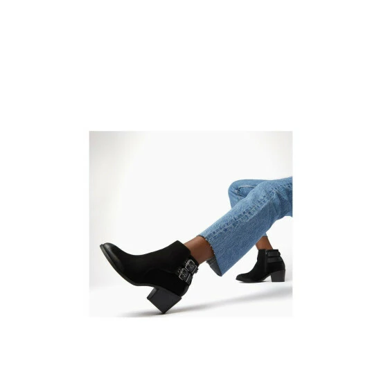 With a subtle Western nod these buckled ankle boots are the perfect seasonal step change. The tan suede makes them the perfect transition boot that will work seamlessly with your warm weather wardrobe and see you through to winter. With an inside zip fastening they are a flattering fit on the ankle.