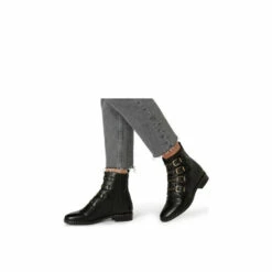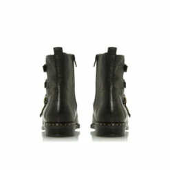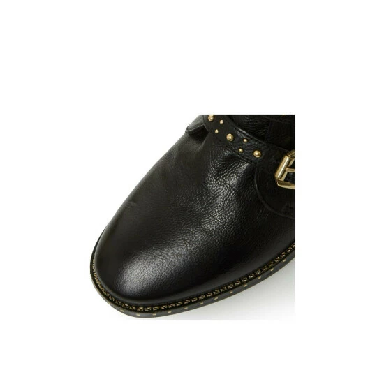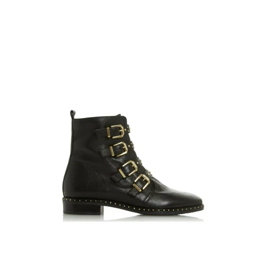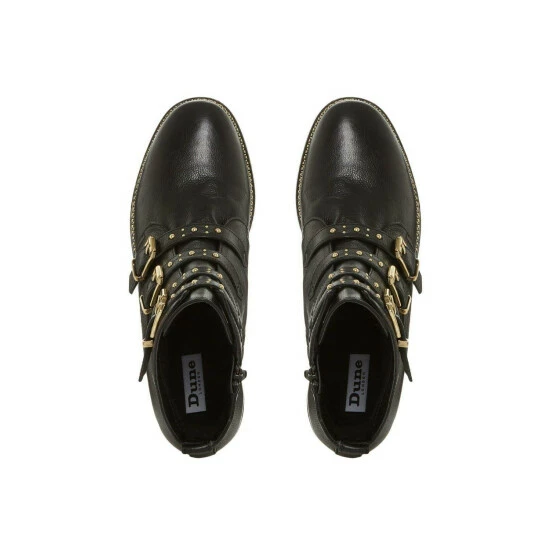 Opt for a tough-luxe edge with the Pixxel biker boot from Dune London. With a low block heel, classic round toe and side zip fastening. Stud details and buckle straps complete the design.