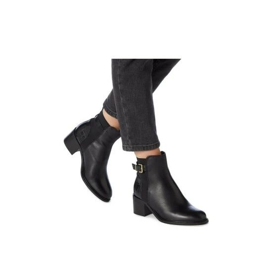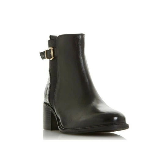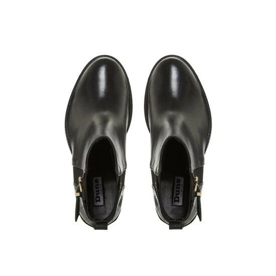 Elevate your smart-casual edit with the Poetic ankle boot from Dune London. An update on the classic Chelsea with a buckle detail and high block heel. Fitted with a round toe, it also has elasticated inserts for a comfy fit.
