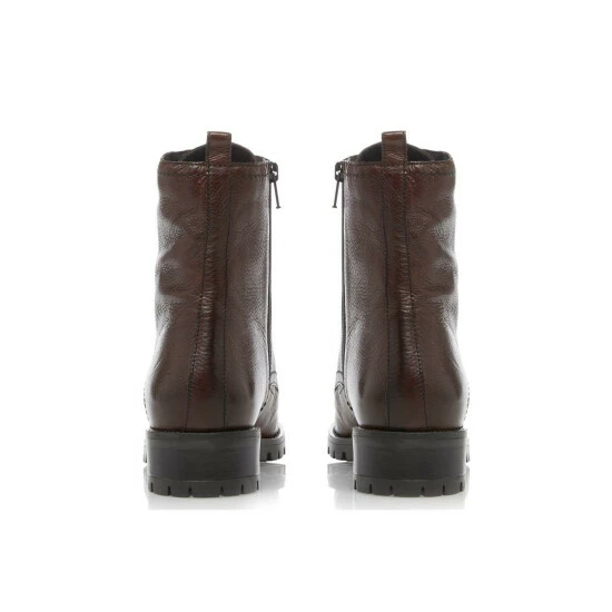 The Prestone boot from Dune will add edge to your footwear line-up. Resting on a comfortable low block heel and shaped with a round toe. It’s fitted with a pull tab and secured with a stylish lace-up fastening.