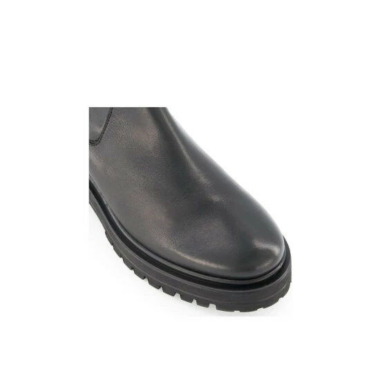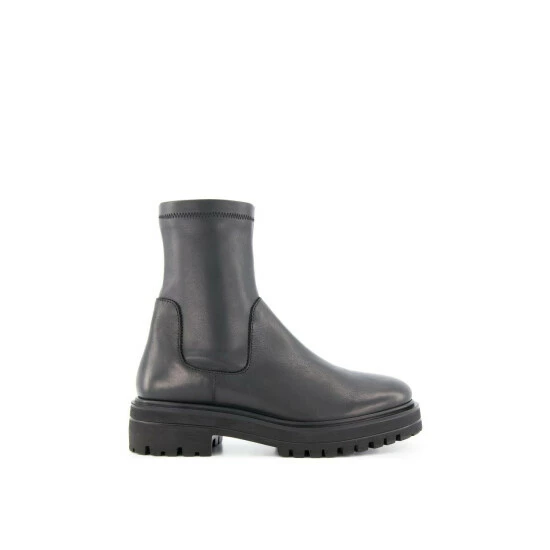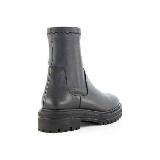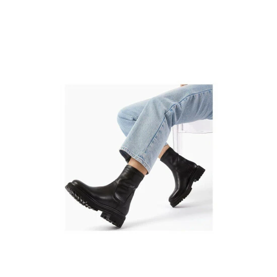 The sock boot gets a tough-luxe update. Set on a chunky cleated sole with a high block heel and rounded toe nail the season ahead with this on trend style. The stretch leather around the ankle ensures a perfect fit.