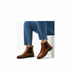 Crafted from beautiful tan leather make room in your wardrobe for these wear-with-anything boots. A classic Chelsea boot with a sartorial twist the traditional brogue punching and wingtip detailing makes these an incredibly smart and stylish choice.