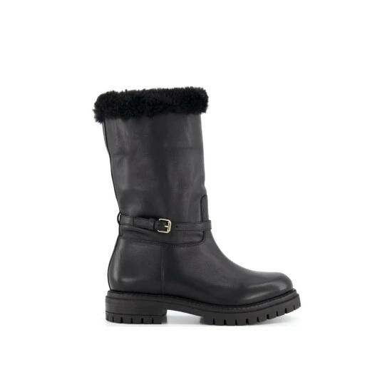 Winter walks call for a warm, practical pair of calf length boots. Made from premium Brazilian leather these can be worn up or turned down to reveal more of the faux fur lining. With a sleek buckle around the ankle they rest on a chunky cleated sole.