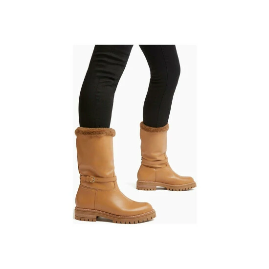 Winter walks call for a warm, practical pair of calf length boots. Made from premium Brazilian leather these can be worn up or turned down to reveal more of the faux fur lining. With a sleek buckle around the ankle they rest on a chunky cleated sole.