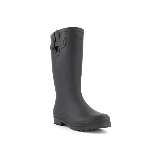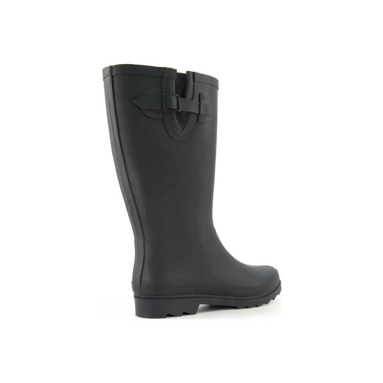 This calf-length wellington boot is comfy and protective, made from hard-wearing rubber to keep the wet away. To the cuff is an adjustable strap ensuring a secure, comfortable fit.