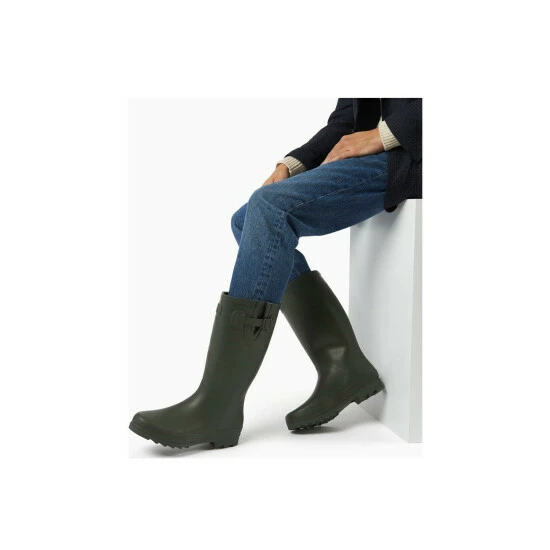This calf-length wellington boot is comfy and protective, made from hard-wearing rubber to keep the wet away. To the cuff is an adjustable strap ensuring a secure, comfortable fit.