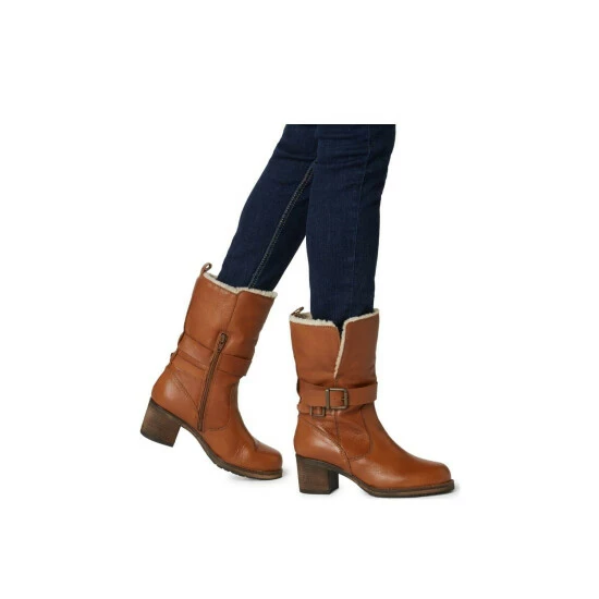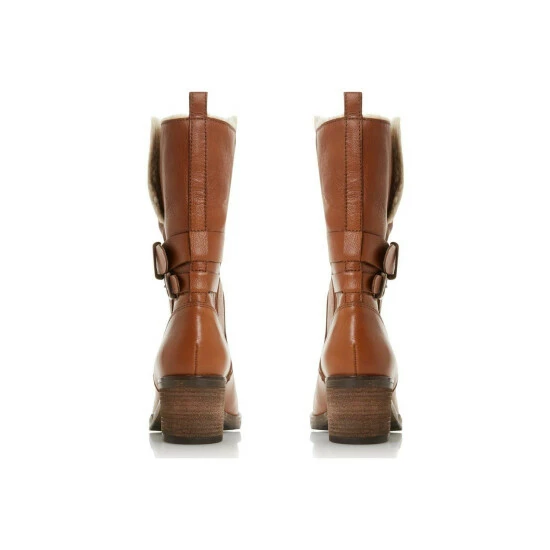 Update your winter wardrobe with the Rokoko boot from Dune London. Designed with buckle details, a low block heel and side zip fastening. It’s complete with a warm borg lined fold down collar for a cosy finish.