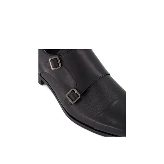 Formal settings call for our Score shoes, designed in luxurious Saffiano leather. This sophisticated style is finished with buckles and a low block heel.