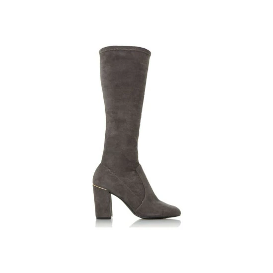 The Seraphina boot from Dune is your go-to choice for work or play. Shaped with a pointed toe and edged with gold-tone metal trims. It rests on a high block heel.