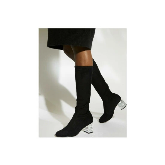 Pair your evening outfit with our chic Starlet Knee-High Boots. Designed in-house with soft faux-suede, we’re especially in awe of the captivating jewel-embellished block heel that’s set to make a captivating style statement. Complete with a side-zip fastening and timeless almond toe, pull yours on come your next party invite for a head-turning look.