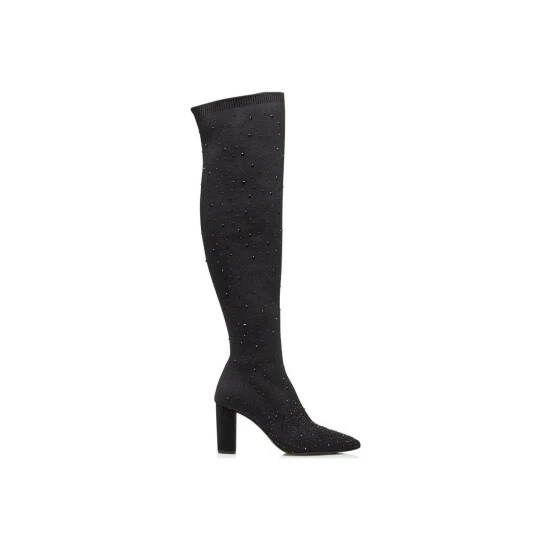 The Dune Starstruck sock boots offer sleek evening style. Embellished with crystals and finished with a pointed toe. This easy pull on design is completed with a chunky block heel.