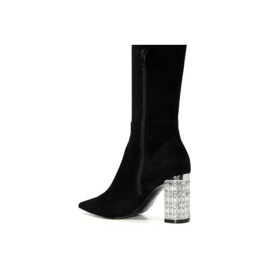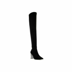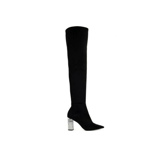 Meet your new favourite evening style, our Superstar over-the-knee boots. Designed with high-fashion appeal, we’ve exclusively embellished the mid-block-heel with sparkling diamante adornments for the ultimate style statement. Complete with an elegant pointed toe, wear yours and tick all of this season’s style boxes.