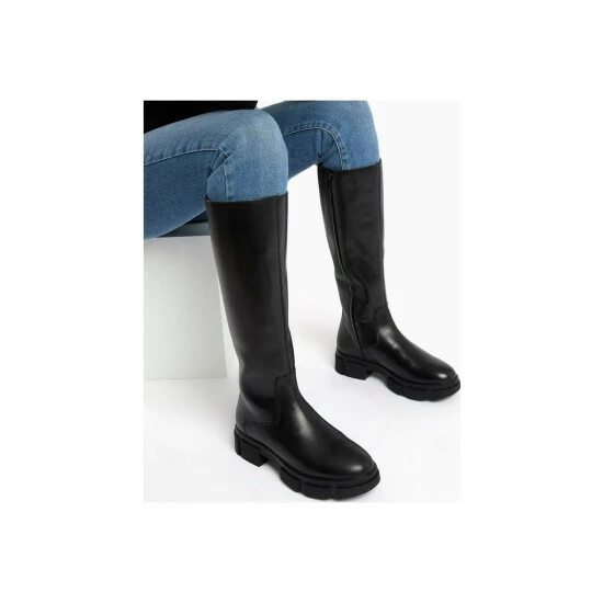 Add a tough-luxe edge to your wardrobe with our chunky cleated sole boots. Obvious comfort and practicality benefits aside, our leather knee high design is perfect style for time spent in the great outdoors or in the city. They fasten with an internal zip. Your go-to boots for a modern look.
