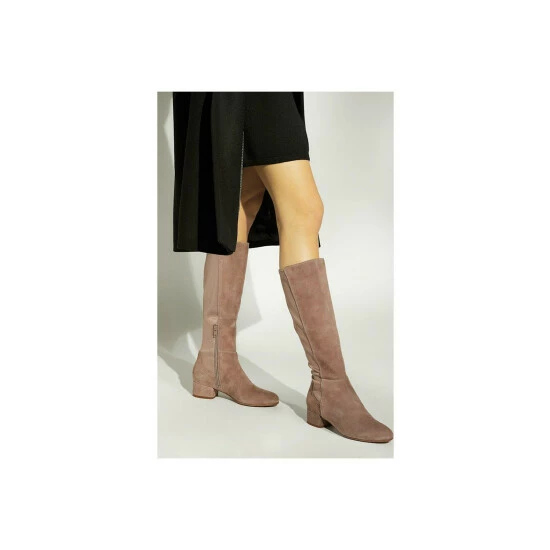 Kickstart your new-season daytime wardrobe with our Tayla knee-high boots. Crafted in-house with premium stretch suede, they are set on a low block heel. The go-to style for days you need to look stylish and be on your feet all day.