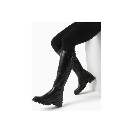A classic equestrian silhouette with a buckled strap on the topline our leather knee-high boots are a timeless style that will never date. With an inside zip fastening and a stretch insert ensuring a close fit on the calf.