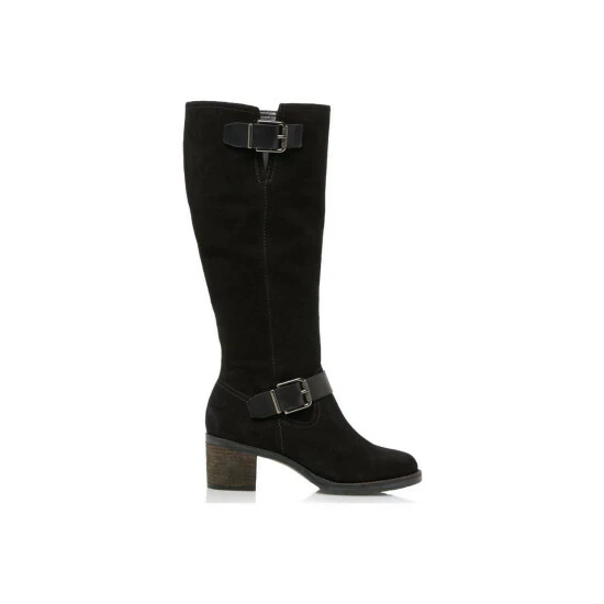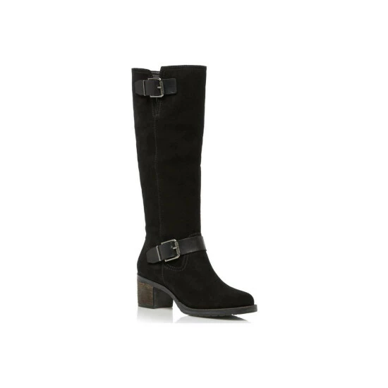 Dune London takes cues from the wild west for its Twiggie knee-high boots. Featuring double buckle details and classic contrast wingtip stitching. They’re set on a mid-block heel and secure with a neat side zip fastening.